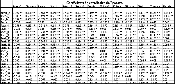 ** significatif à a =0.01; *significatif à a =0.05; voir annexe page *